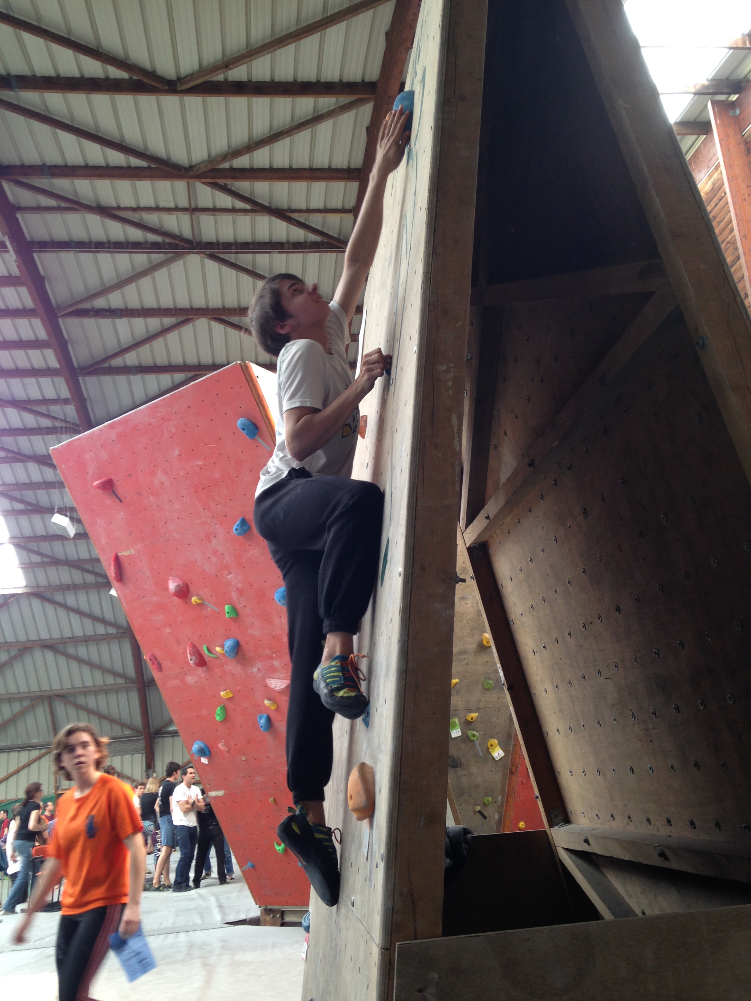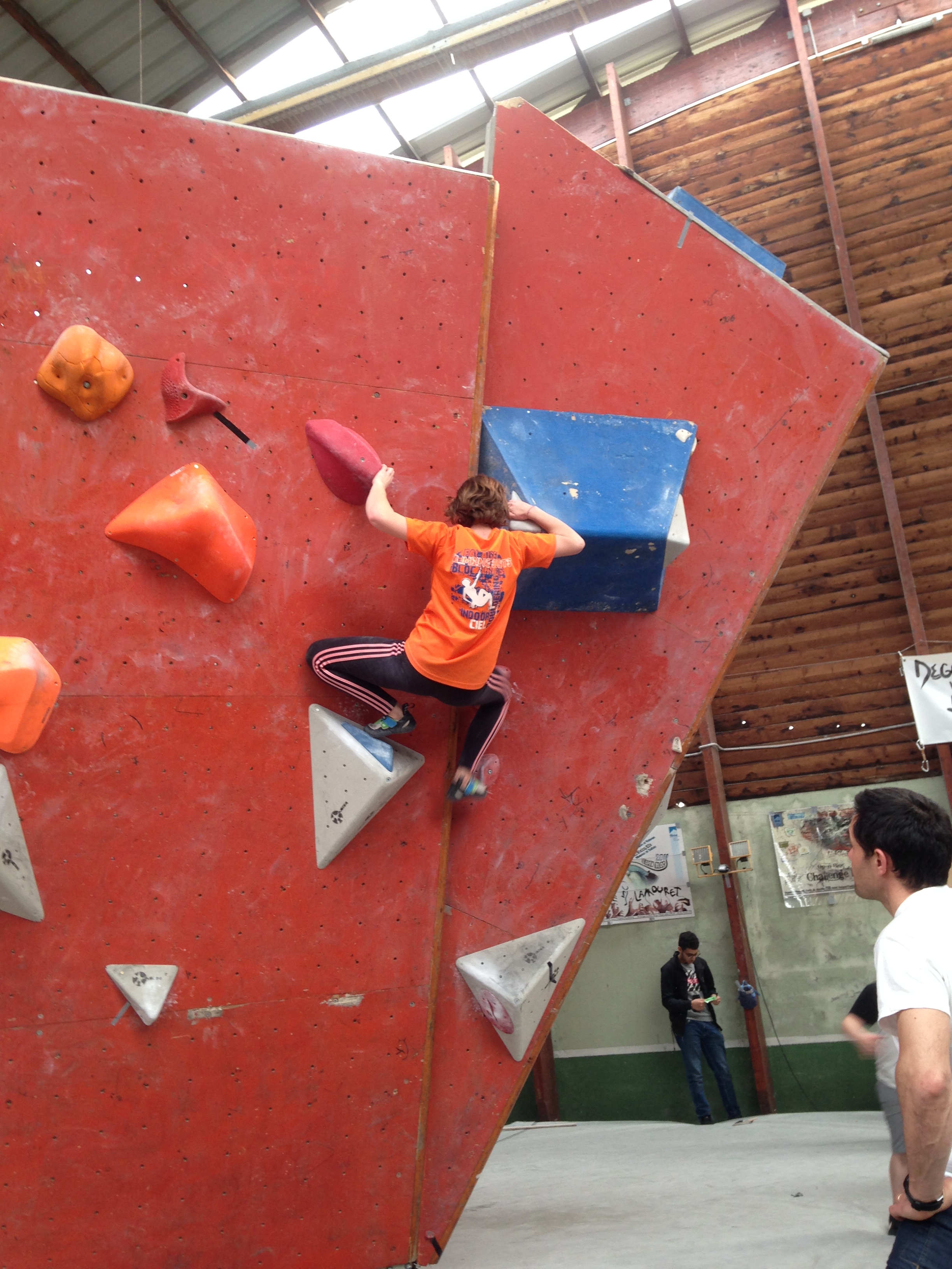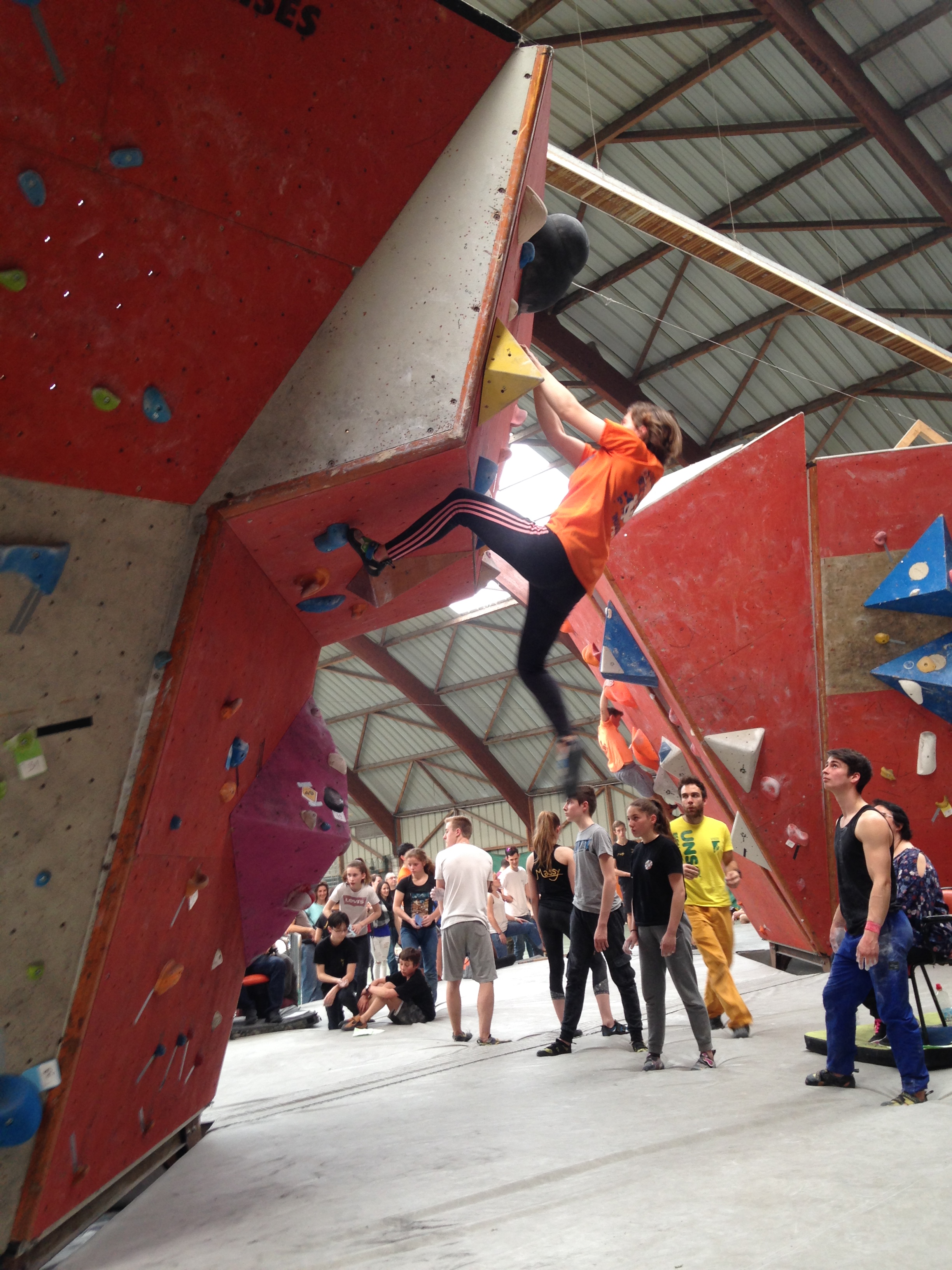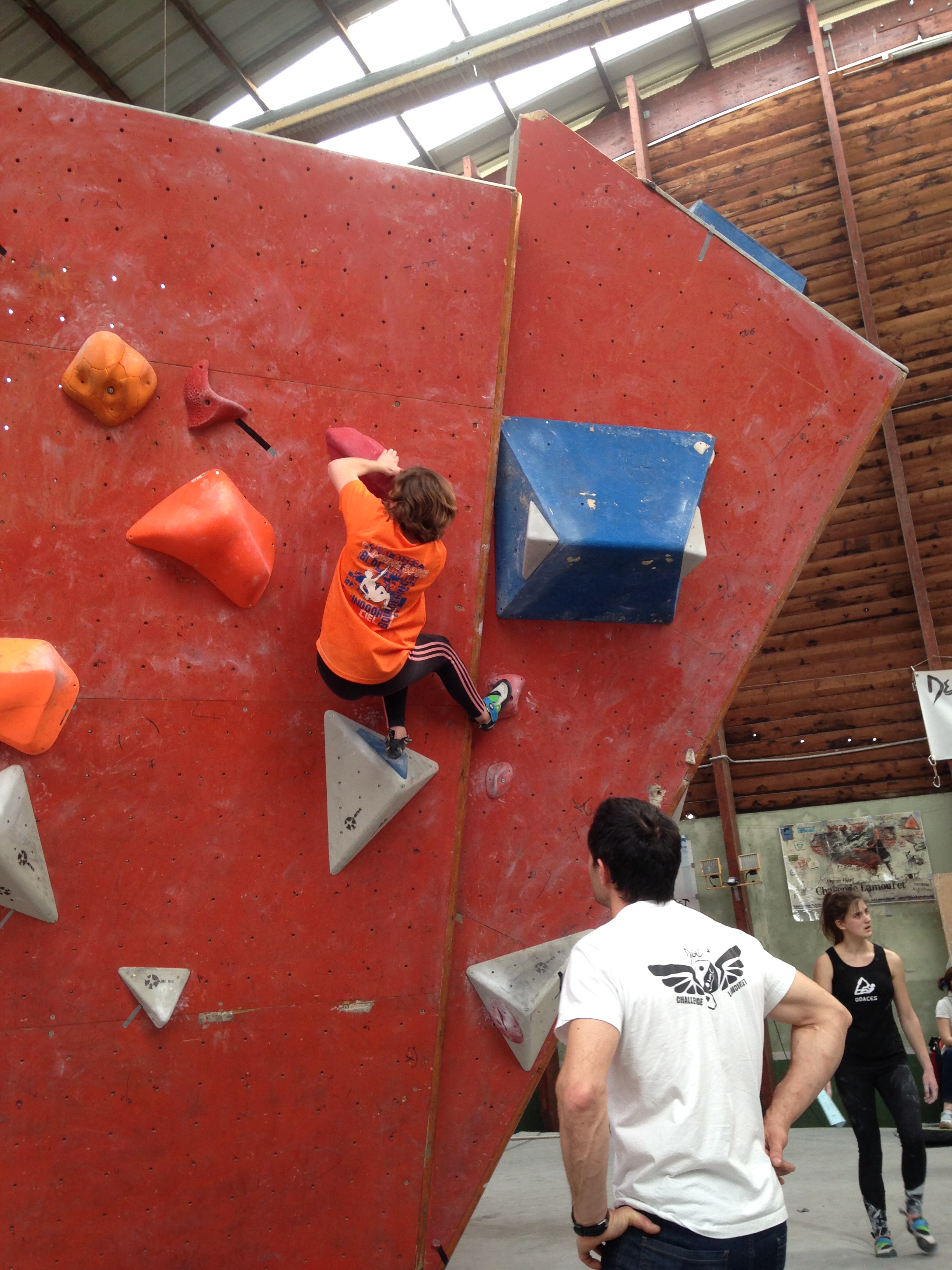 Place à un Open de Bloc : 2h30 pour tenter d’enchainer le maximum des 30 blocs proposés. Du facile au très dur, beaucoup de dévers et quelques dalles bien techniques au programme. Nos jeunes se sont encore fort bien battu dans une discipline bien spécifique et pour laquelle on ne s’est pas beaucoup focalisé (préférant maximiser l’entraînement sur la voie).
