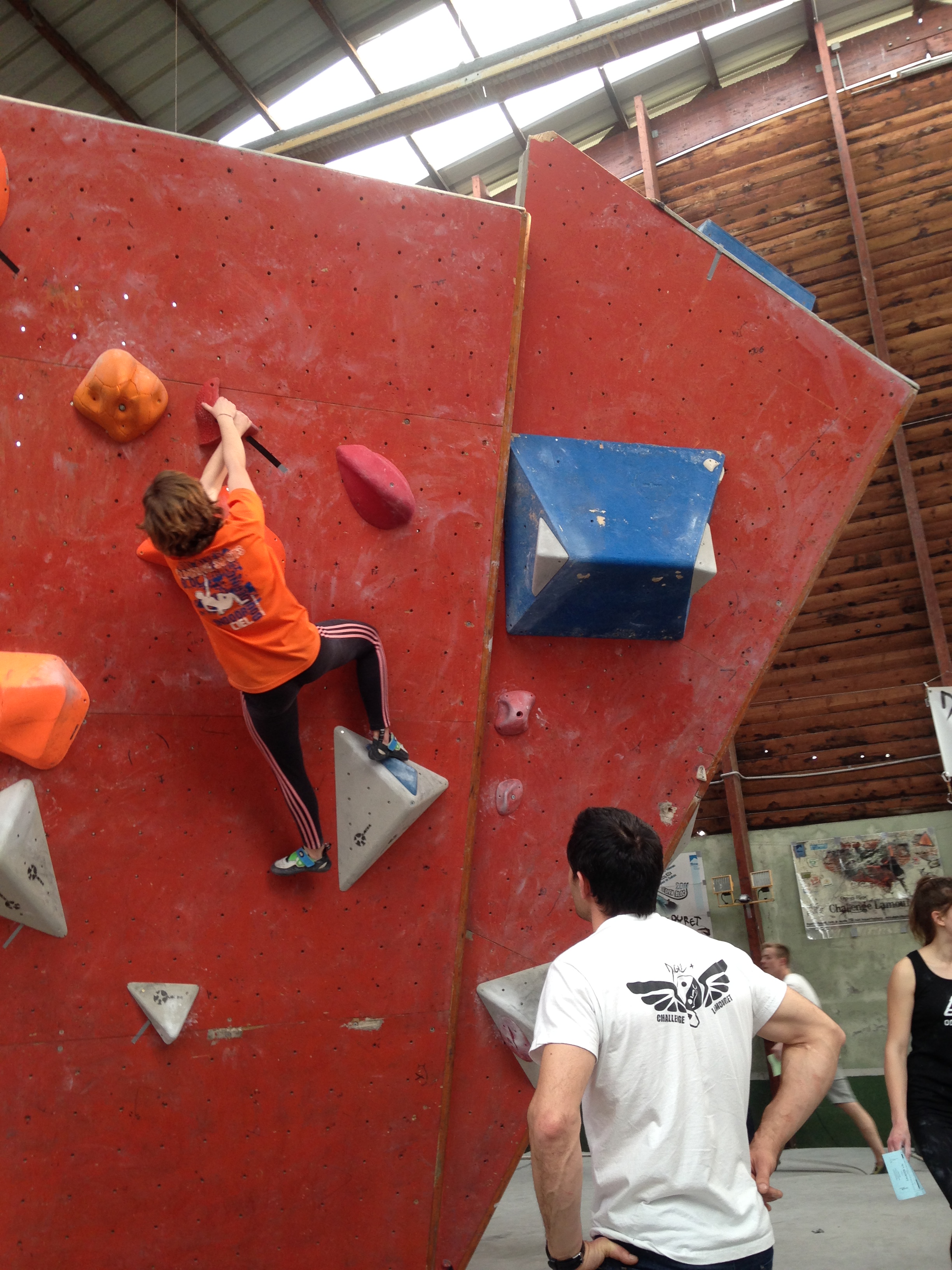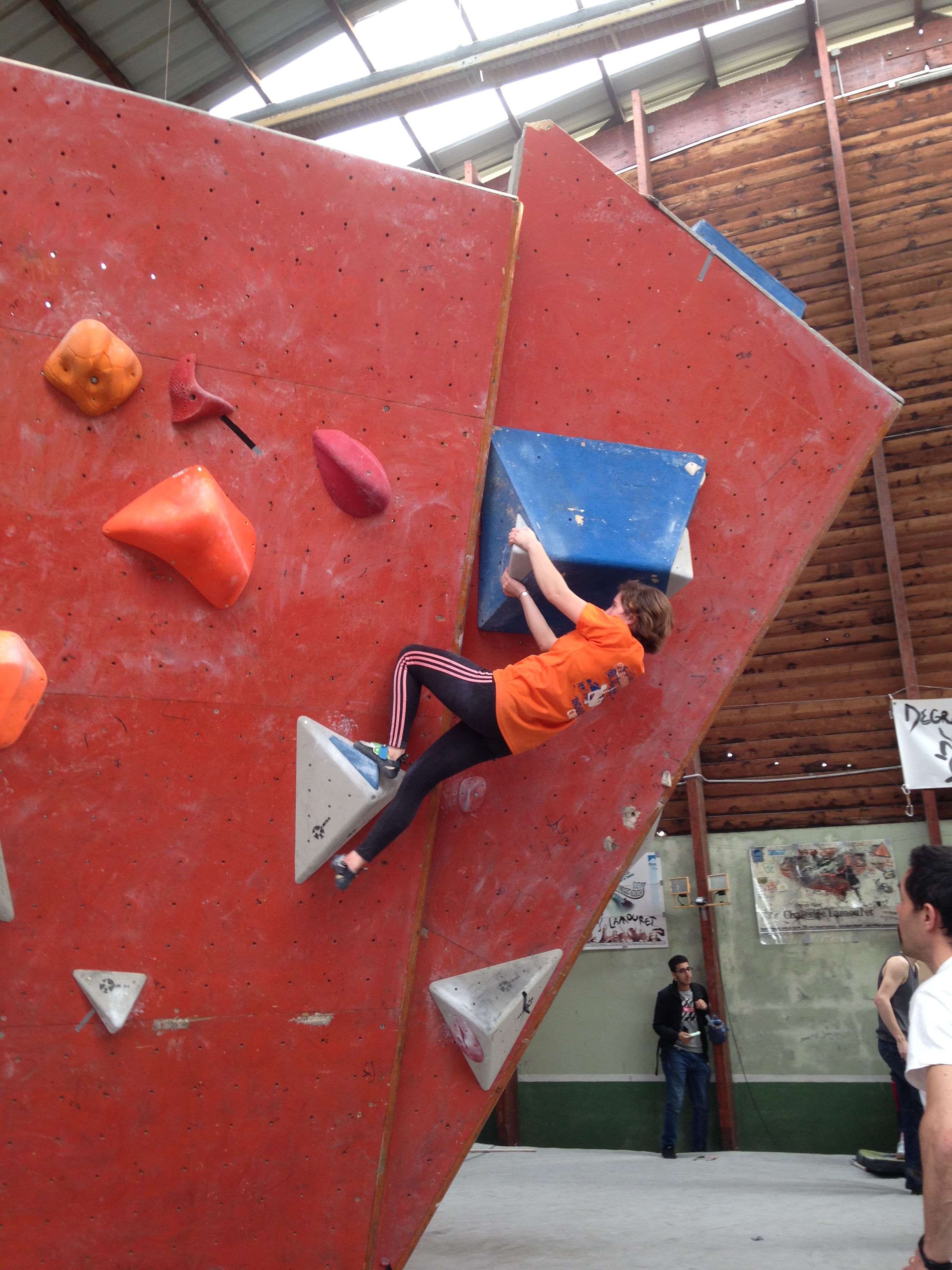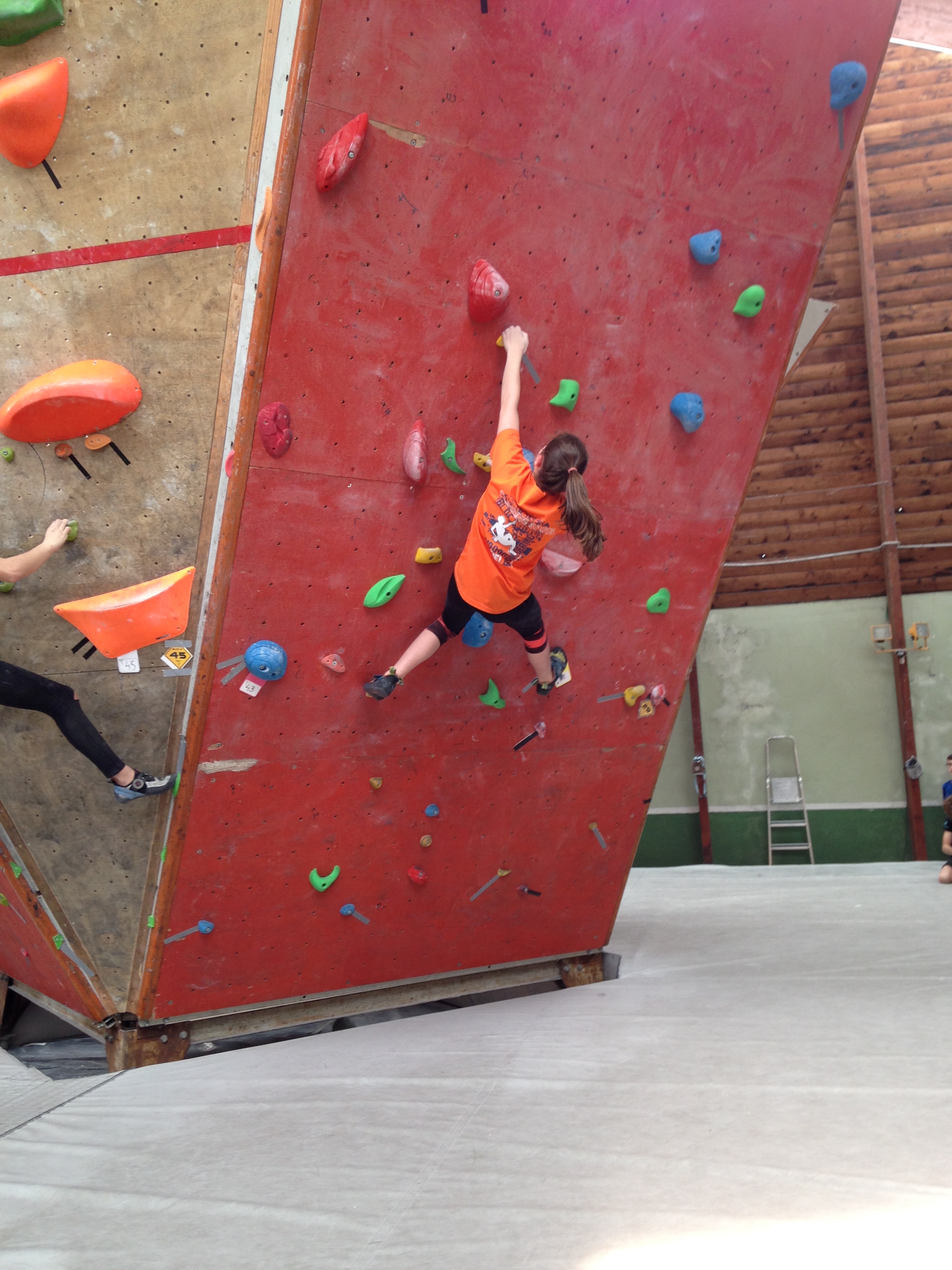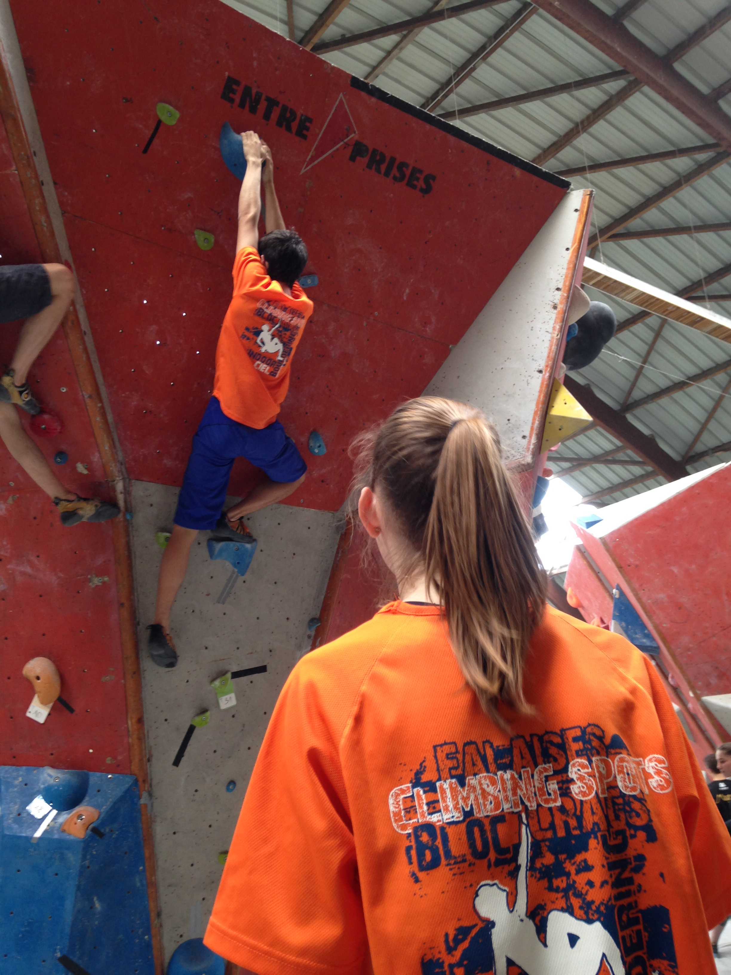 Place à un Open de Bloc : 2h30 pour tenter d’enchainer le maximum des 30 blocs proposés. Du facile au très dur, beaucoup de dévers et quelques dalles bien techniques au programme. Nos jeunes se sont encore fort bien battu dans une discipline bien spécifique et pour laquelle on ne s’est pas beaucoup focalisé (préférant maximiser l’entraînement sur la voie).