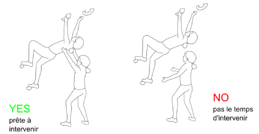 - Maintenir les mains proches du grimpeur